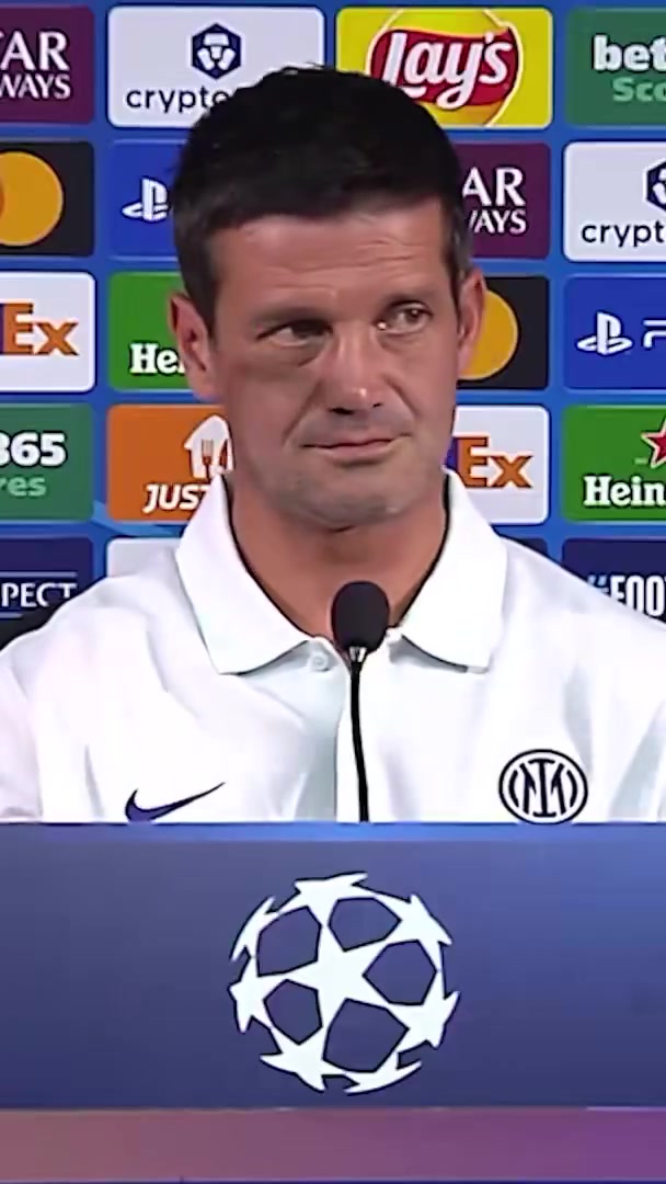 吓成表情包😨发布会耳机突然发出杂音,国米主帅齐沃被吓一跳